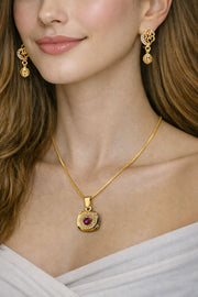 Elegant Ruby Glow Gold-Plated Pendant Set